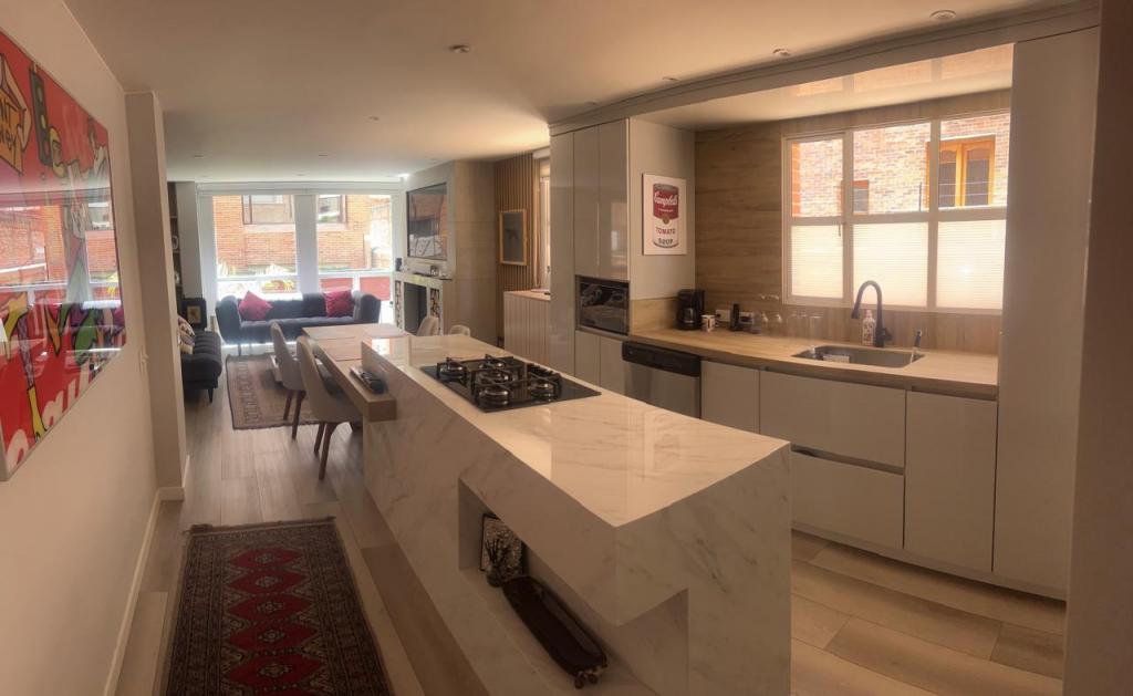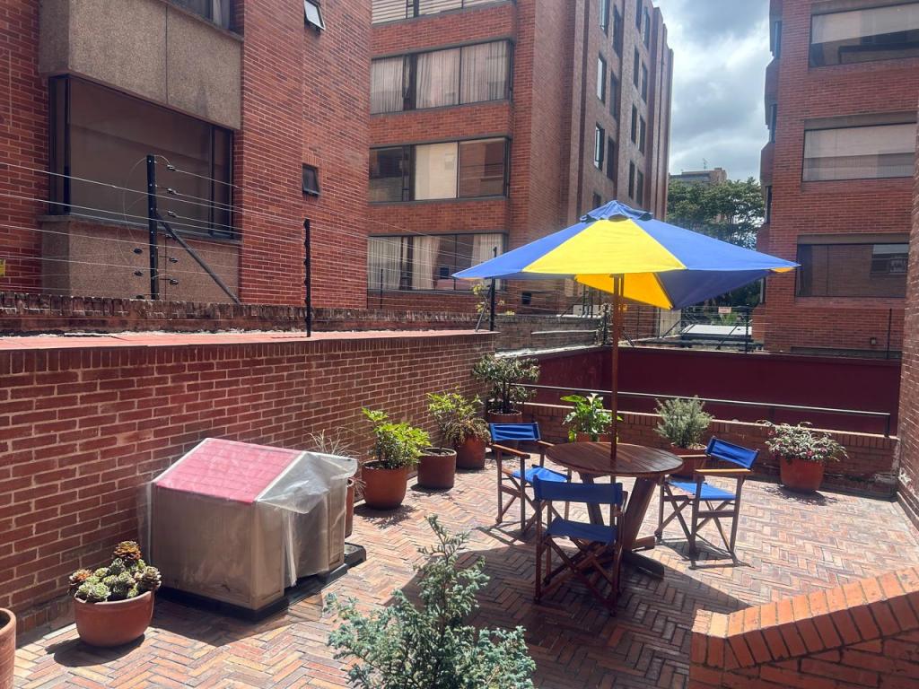 Espectacular apartamento en primer piso con amplia terraza, completamente remodelado en 2022. Cuenta con una generosa zona social y una moderna cocina abierta, totalmente equipada. Además, dispone de una zona de ropas. El espacio que actualmente funciona como estudio con biblioteca podría convertirse en una segunda habitación. La habitación principal incluye walk-in closet y baño privado. También cuenta con un baño social completo, dos parqueaderos en línea y un amplio depósito.