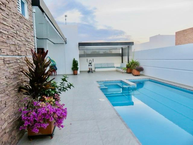 Casa en venta ubicada en el Condominio Villa Esperanza II, vía Flandes–Espinal km 5. Propiedad de 223 m², construida en 2024, ideal como vivienda familiar, casa de descanso o inversión. Cuenta con cuatro alcobas, cada una con baño privado y aire acondicionado, totalmente amobladas. Zona social con sala y comedor independientes, cocina abierta con mesón central, nevera, congelador y muebles empotrados. Dispone de baño social, patio de ropas, depósito y ventiladores en todos los espacios. En el área exterior se destacan piscina y jacuzzi privados, patios cubiertos con cortinas exteriores y zona de estar fija. Incluye cuatro parqueaderos, dos cubiertos. El condominio ofrece portería, administración, sede social, piscina semiolímpica, jardines, vías adoquinadas y zonas deportivas en desarrollo.