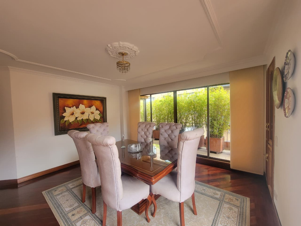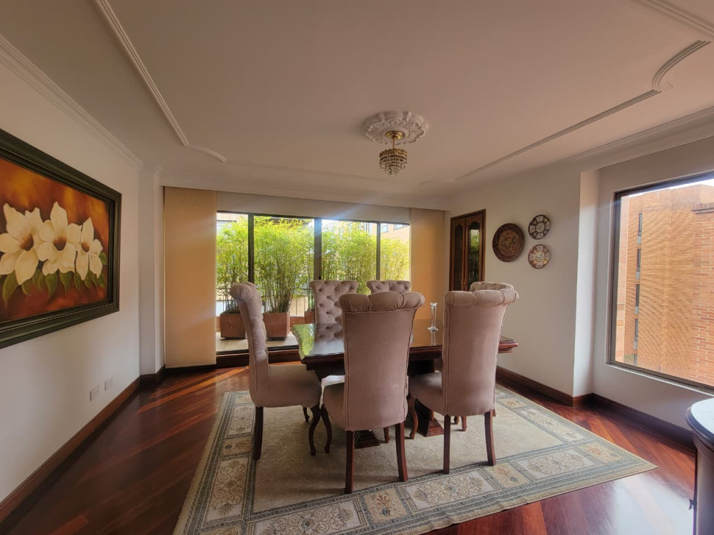Este exclusivo apartamento dúplex de 280 m² ofrece amplitud, privacidad y una distribución ideal para disfrutar cada espacio. En el primer nivel encontrarás un hall de entrada que conecta con la sala y el comedor independientes, una cocina cerrada de excelente tamaño, estudio y tres habitaciones, una de ellas con baño privado. En el segundo nivel se ubica la habitación principal, un amplio refugio con baño en suite, vestier y jacuzzi. Este piso también incluye una sala de TV perfecta para el entretenimiento y una terraza BBQ ideal para reuniones al aire libre. El inmueble cuenta con tres parqueaderos independientes y está ubicado en Santa Bárbara Occidental, a pasos de la estación Pepe Sierra de TransMilenio, con fácil acceso a servicios, comercios y vías principales. Ideal para quienes buscan comodidad, buena ubicación y un estilo de vida superior.